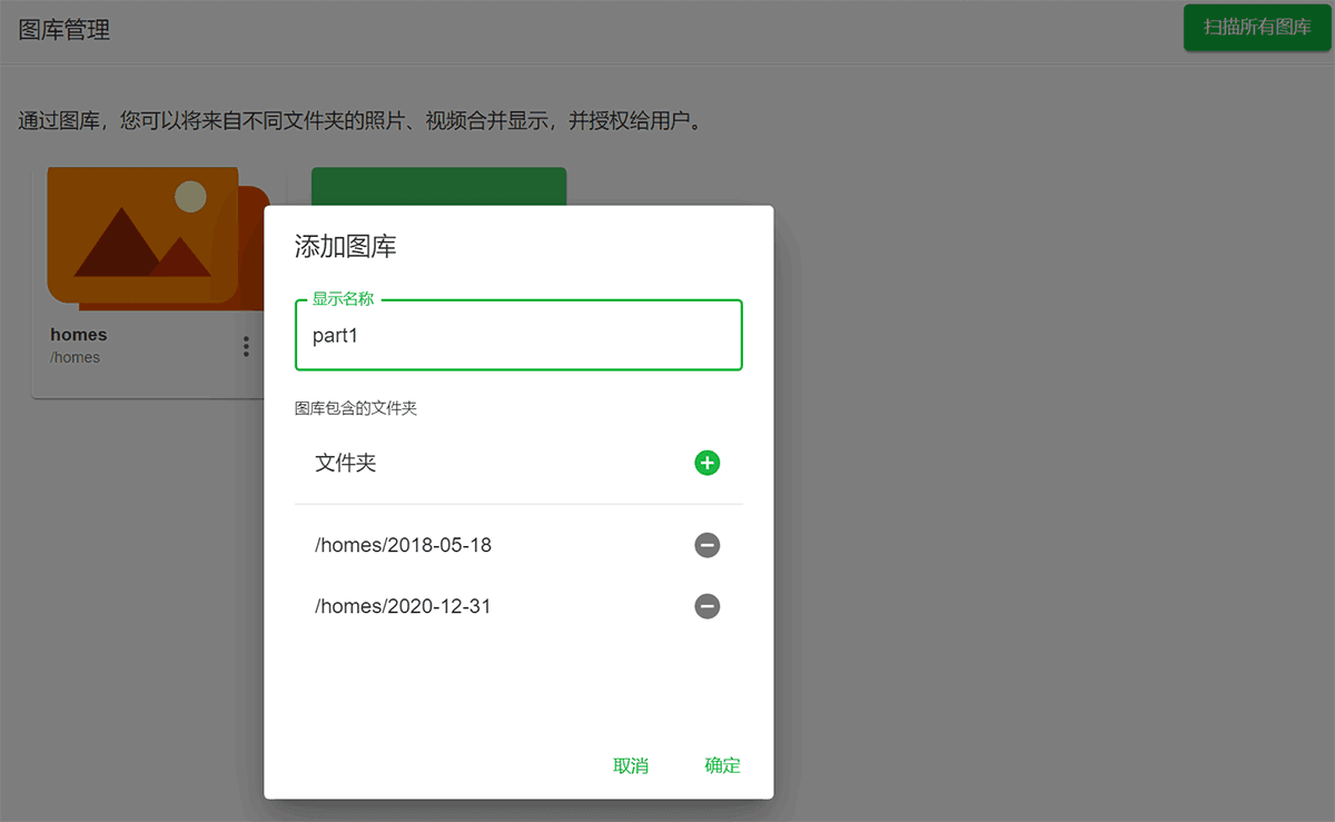 用于手动触发扫描图库关联的文件夹,一般情况下无法执行此操作,因为每5分钟系统会自动扫描所有图库;